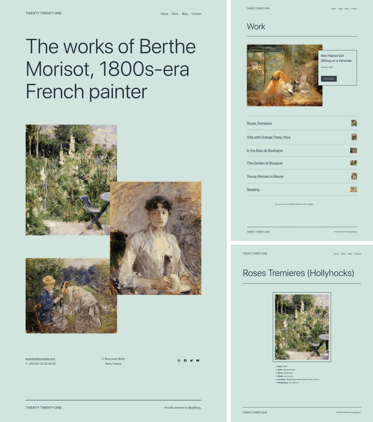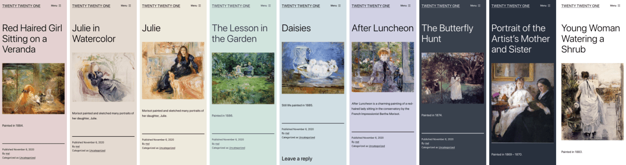 Urte berri baterako aproposa, Twenty Twenty-One-k aurrez hautatutako kolore-paleta sorta eskaintzen dizu, pastelean; horiek guztiak AAA arauetara egokitzen dira kontrastea lortzeko. Gaiaren atzeko planoaren kolorea ere hauta dezakezu, eta gaiak irisgarritasunarekiko testu koloreak aukeratzen ditu zuretzat — automatikoki!