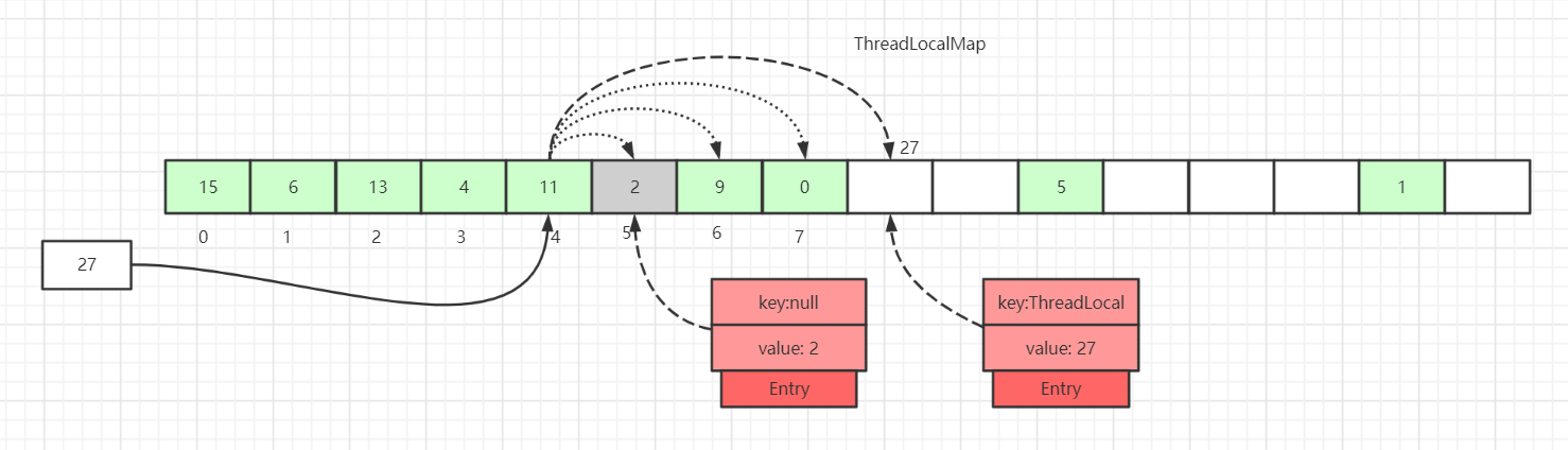 探测式清理是以当前Entry 往后清理,遇到值为null则结束清理,属于线性探测清理。