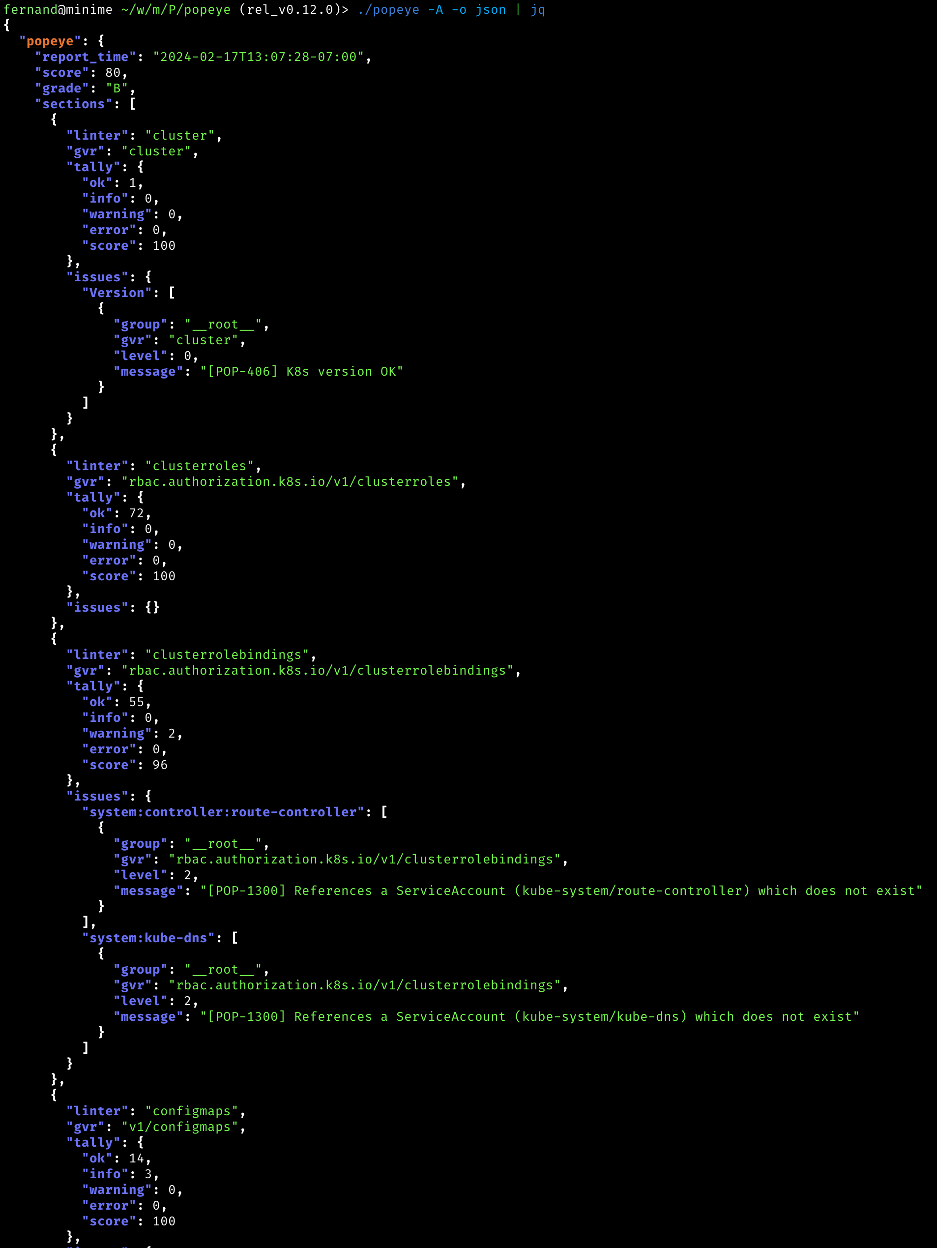 NOTE! Popeye exits with a non-zero error code if any lint errors are detected.
