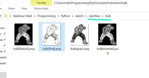 Menu driven script- takes either the path of the image from the user or captures the image using webcam as per the user preference. The image is then converted to sketch and output can be found in the sketches folder.