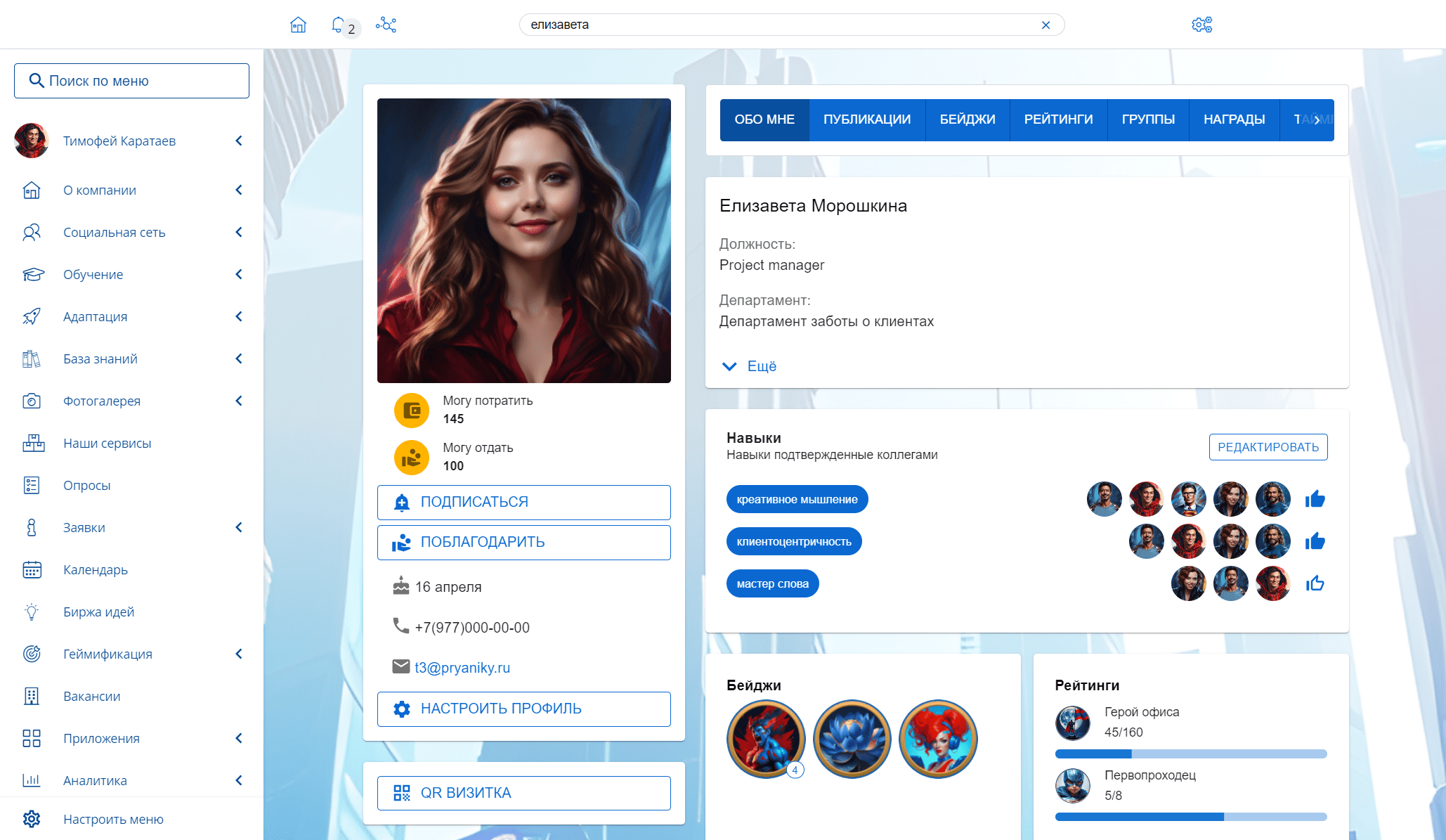 Конструктор гейммеханик: игровой валюты, бейджей, рейтингов, конкурсов, магазина призов – для различных HR сценариев.