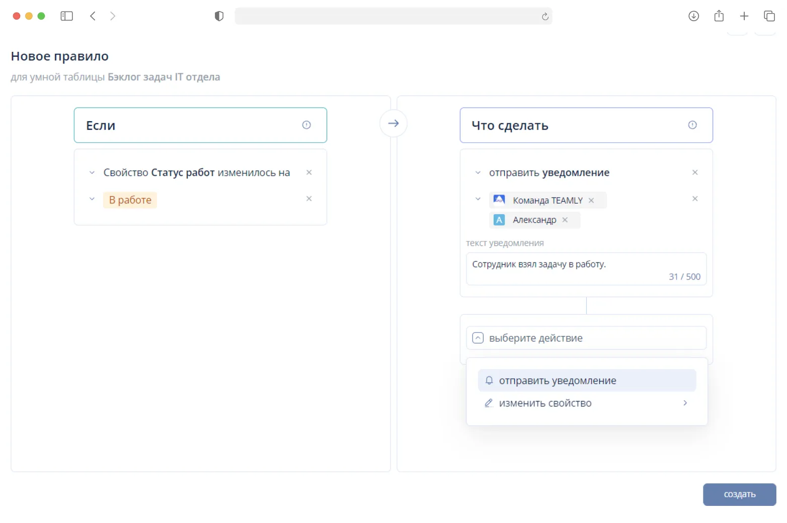 Создание задач и подзадач