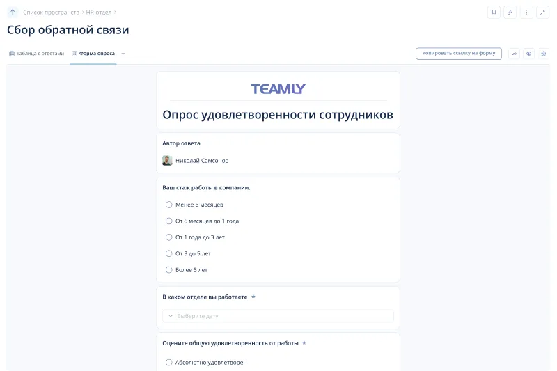 Формы сбора обратной связи