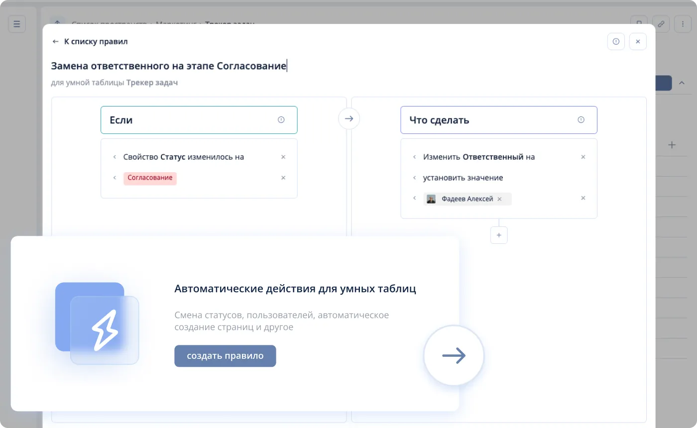 Назначение ответственных