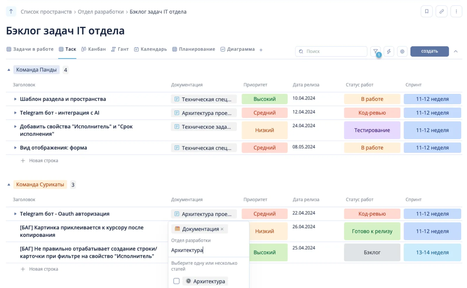 Бэклог задач IT отдела